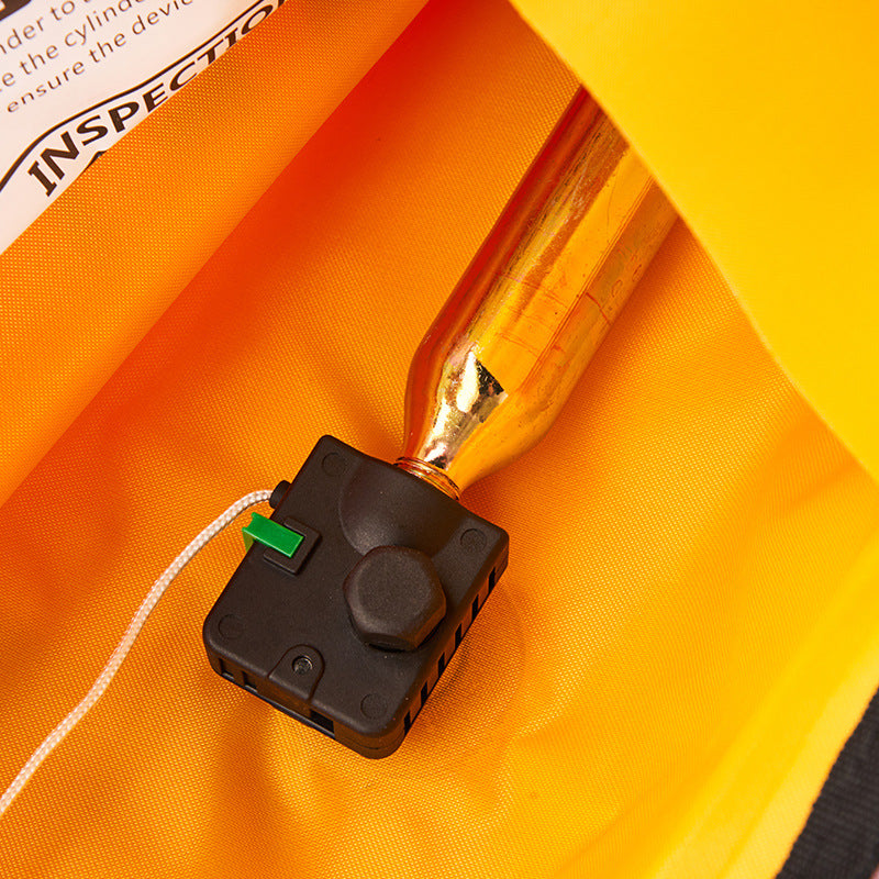 A diferencia de los chalecos tradicionales voluminosos, este modelo se usa ligero y cómodo durante horas. Cuando ocurre una caída al agua, el sistema acciona el inflado con cartucho de CO₂ de 33g, creando una cámara de flotación que ayuda a mantenerte a flote.
