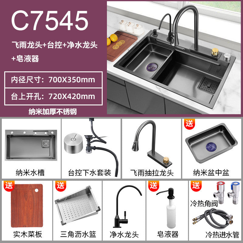 Fregadero de cocina de Acero 304 compatible con sistema de Purificacion con grifo y accesorios, diversos paquetes