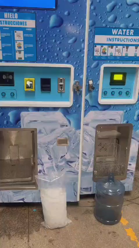 Turn your investment into a highly profitable business with the Water and Ice Vending Machine , designed to offer up to 3000 liters of purified water and 450 kg of ice per day . Ideal for urban, rural or high-traffic areas, this automated solution combines innovation, efficiency and durability.