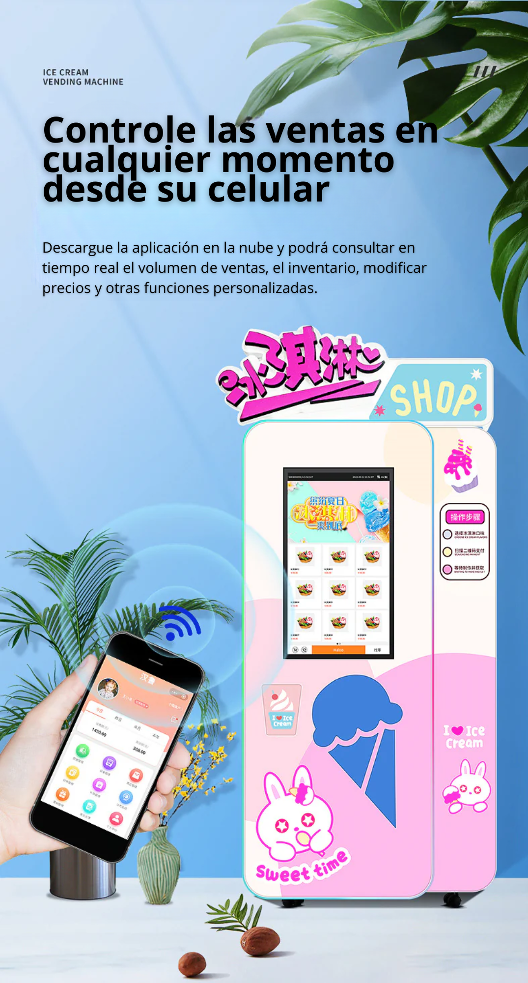 This ice cream vending machine is perfect for generating passive income. With the ability to sell ice cream 24 hours a day, 365 days a year, this smart machine offers different flavors of ice cream. Enjoy a successful business with this ice cream vending machine!