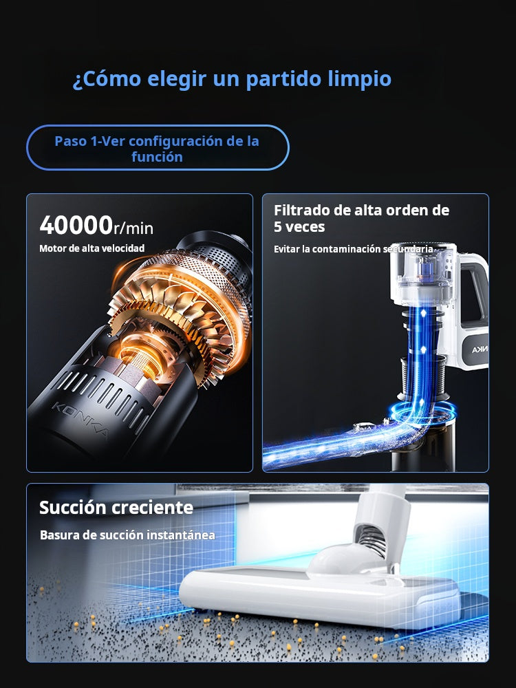 Aspiradora Konka para el hogar aspiradora de succión grande para barrer y trapear 3 en 1 pequeña máquina inalámbrica de pelo de gato de mano todo en uno