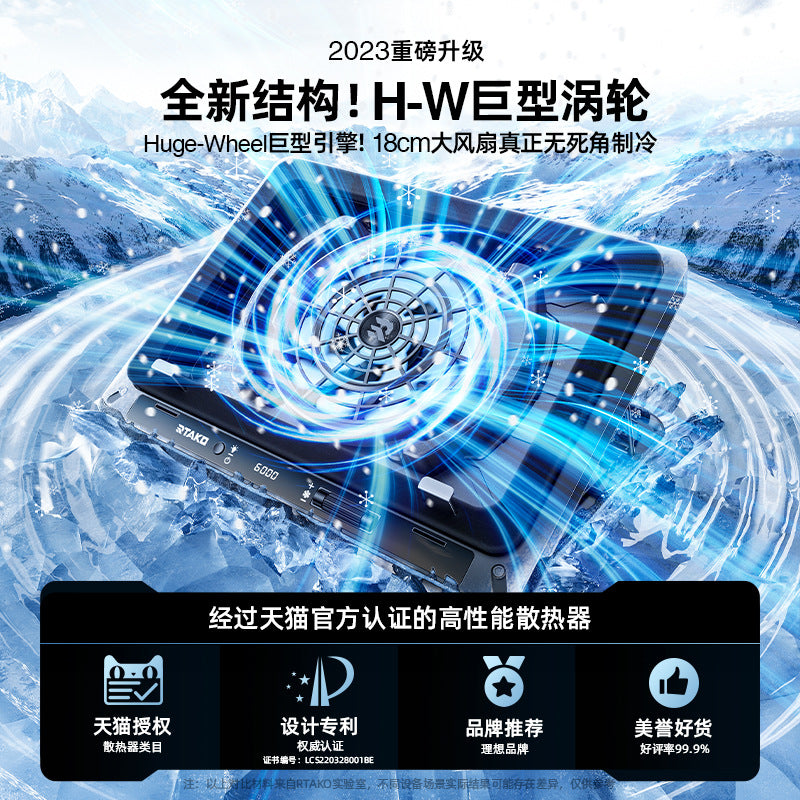 Base Enfriadora RTAKO 18CM Turbo Silent Fan para Laptop | 6000RPM, RGB, Soporte Ajustable, Ultra Silenciosa para Gaming Notebook