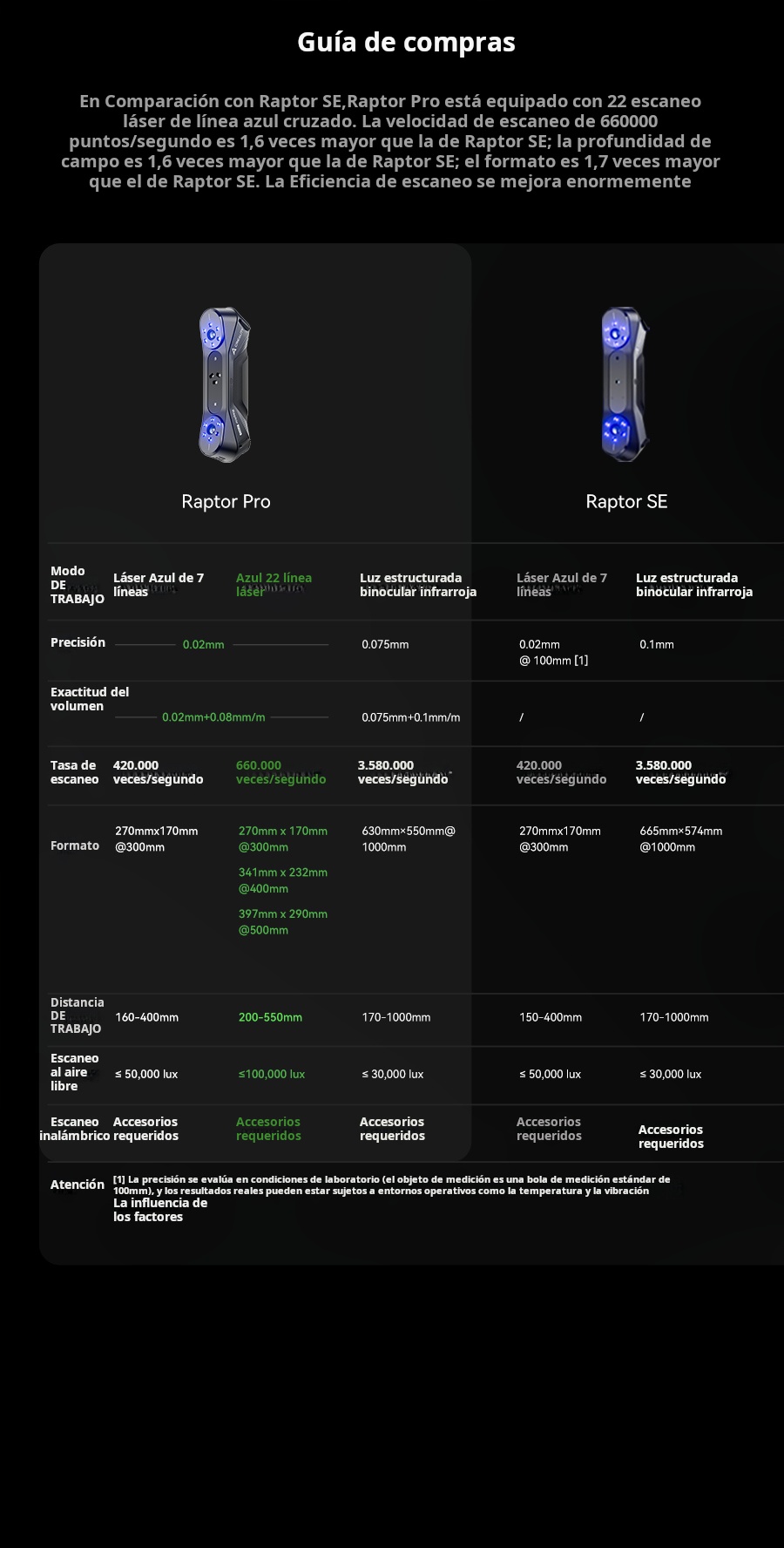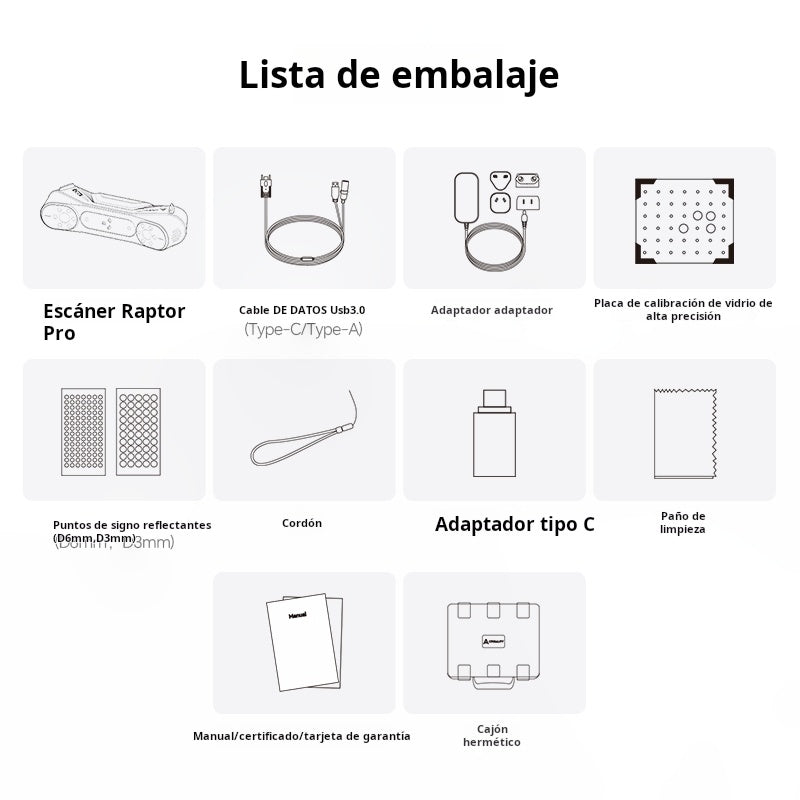 Escaner 3D Creality Raptor Pro – 22 láseres cruzados + 7 paralelos, NIR, 0.02 mm, 60 FPS