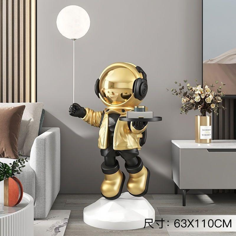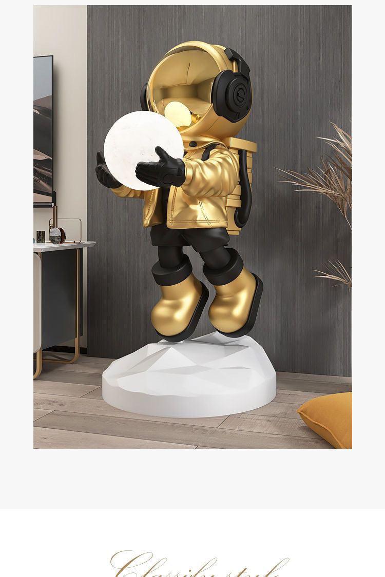- Diseño futurista: Inspirado en la exploración espacial, este astronauta esculpido sostiene una esfera luminosa que añade un toque cálido y elegante a tu espacio.