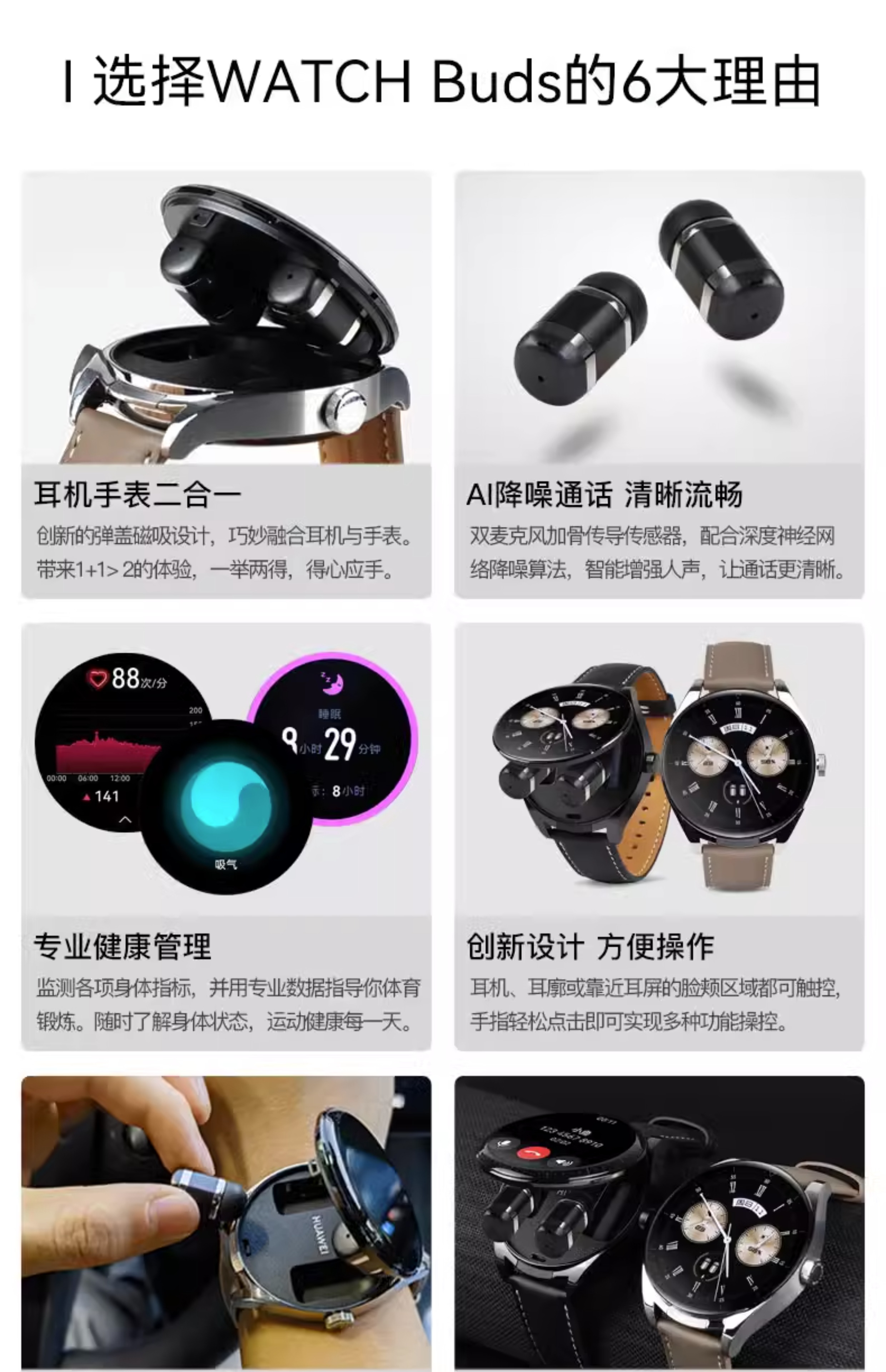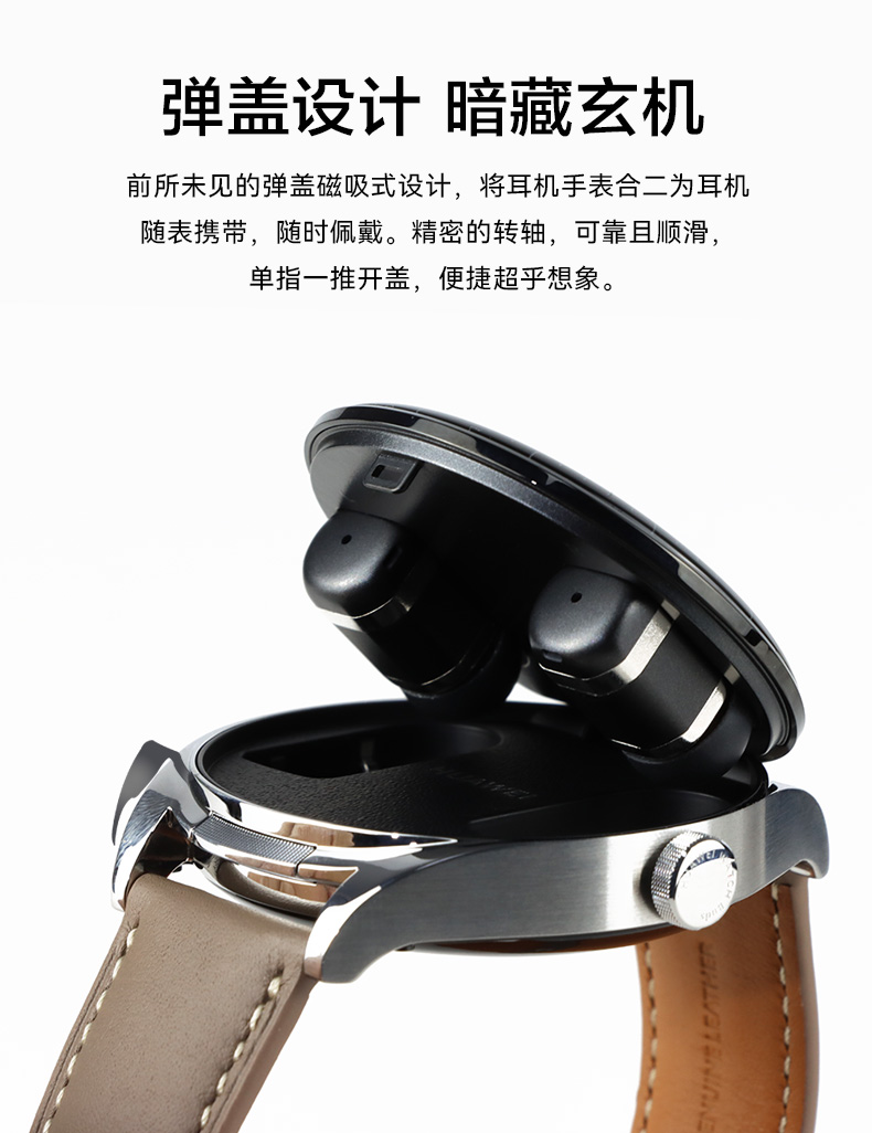 Descubre HUAWEI WATCH Buds, el primer reloj inteligente 2-en-1 que integra auriculares TWS dentro de la propia caja del smartwatch. Con un toque, la tapa magnética se abre para revelar los earbuds siempre listos; al guardarlos, el reloj los protege y recarga, eliminando por fin el estuche adicional.