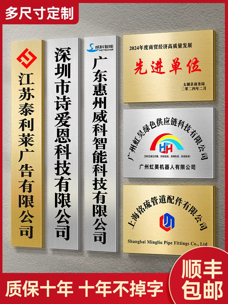 Letreros de acero inoxidable, placas de puerta de empresa, producción de letreros, personalización , placas de bronce de cabeza de puerta