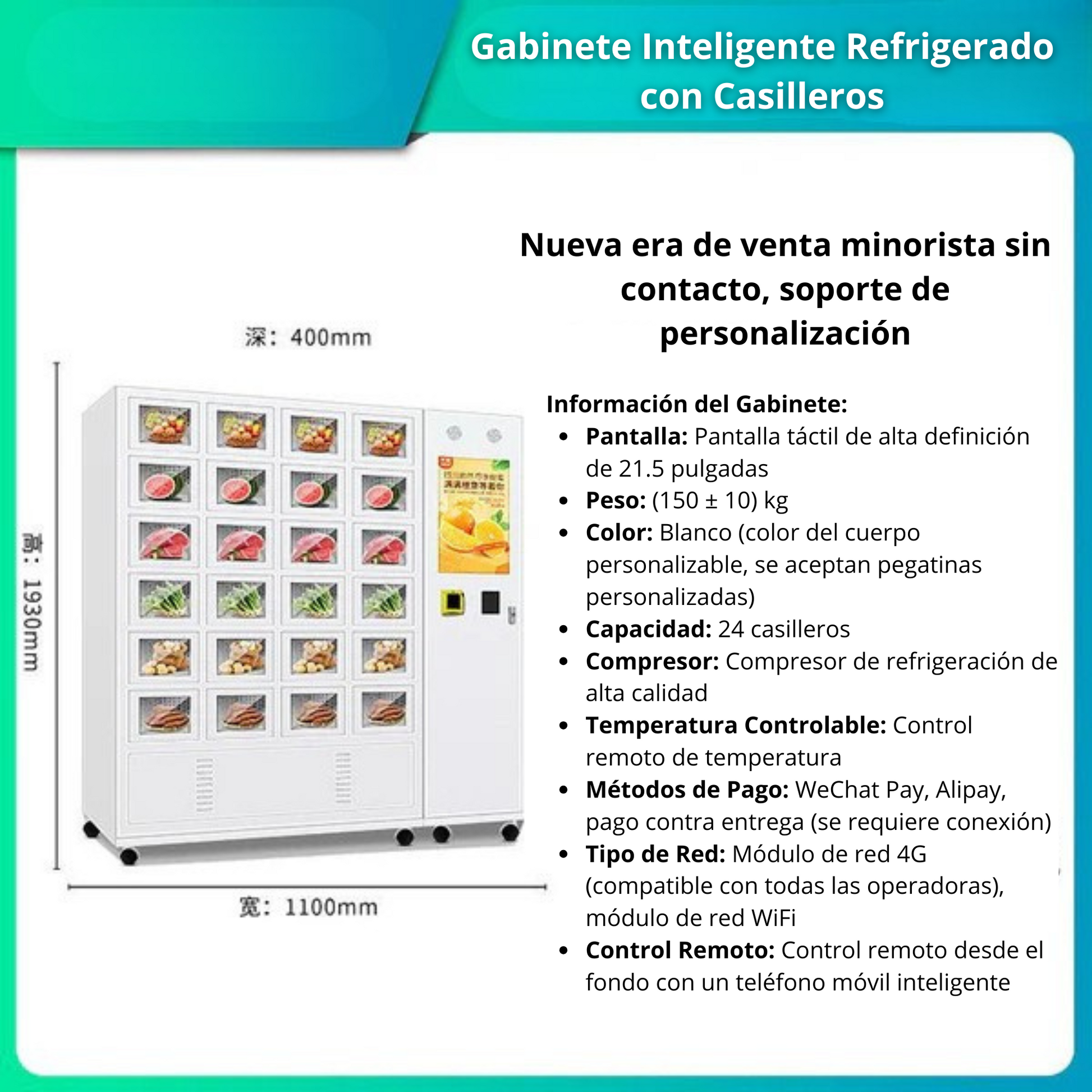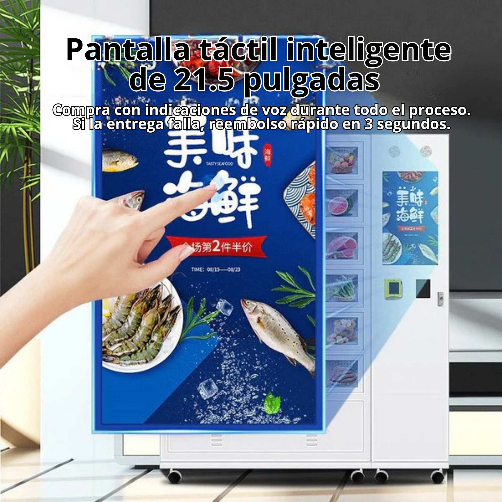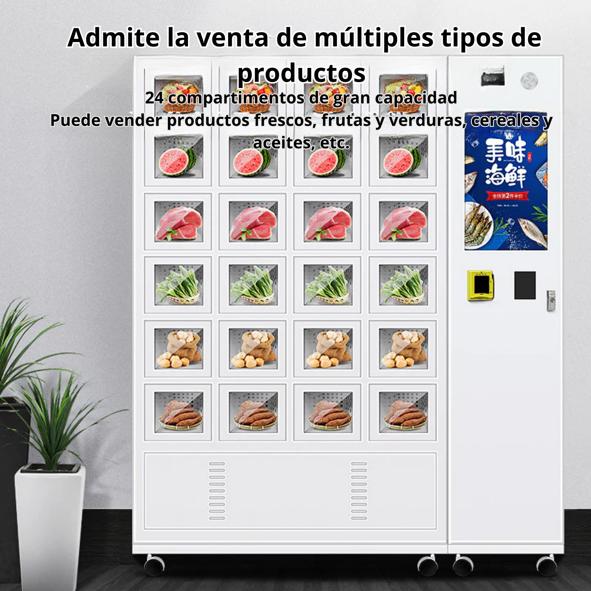 La máquina expendedora de carne, pescado, frutas y vegetales es un supermercado 24/7 de autoservicio que ofrece una amplia variedad de productos frescos y refrigerados en gabinetes de celosía. Ofrece conveniencia y accesibilidad para satisfacer las necesidades de alimentación de los clientes en cualquier momento del día.