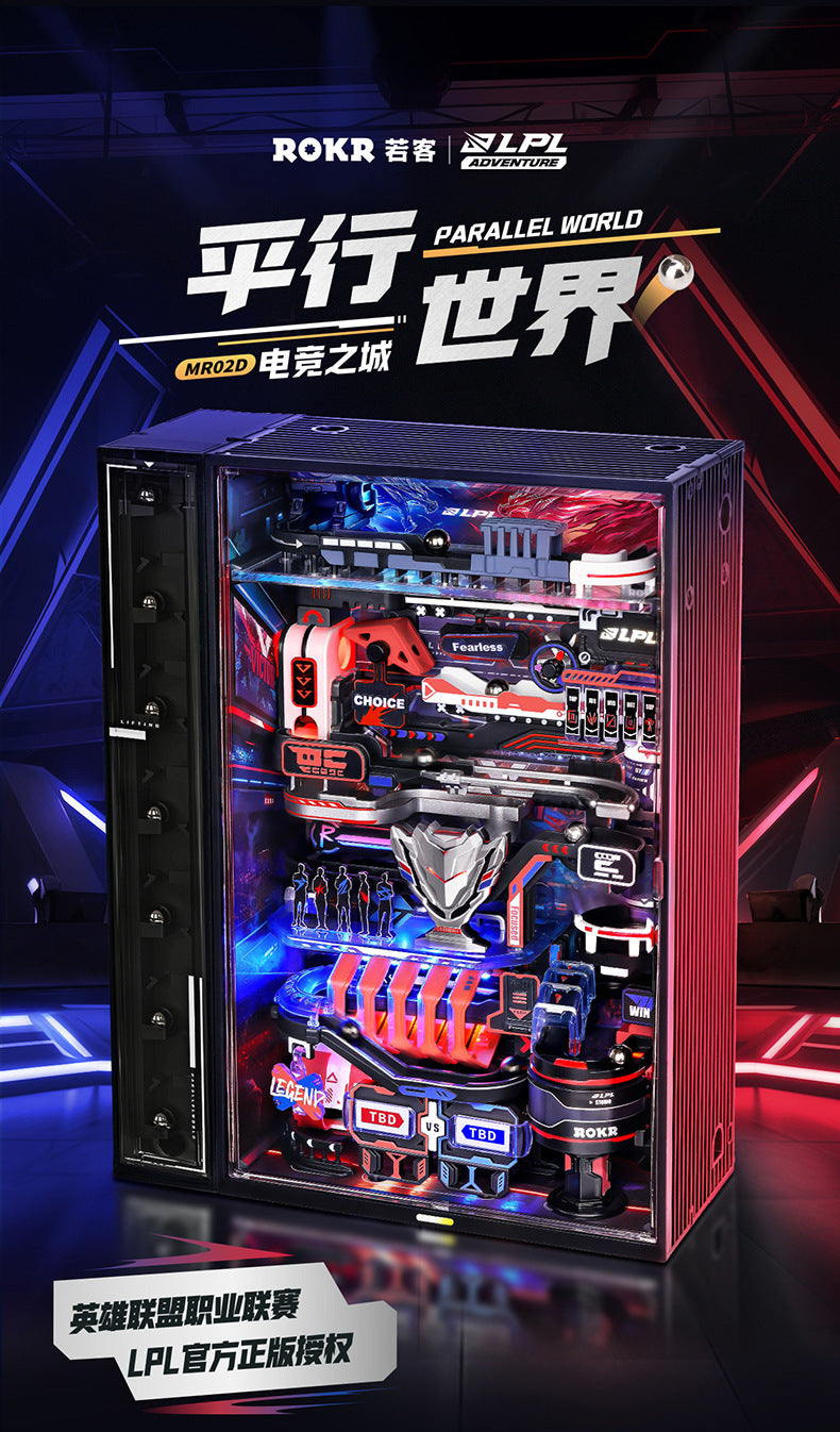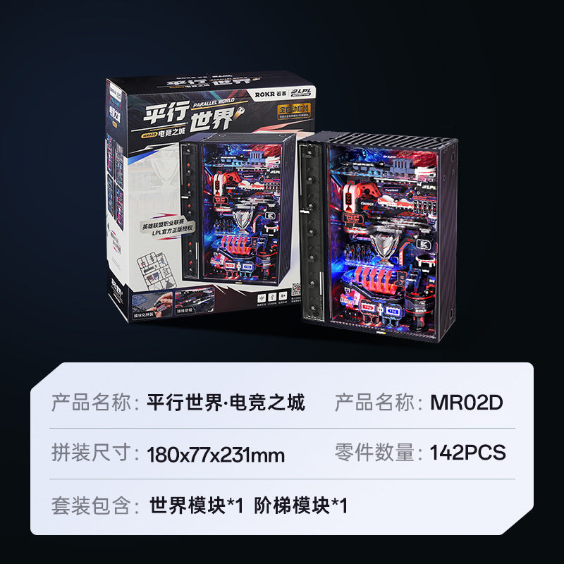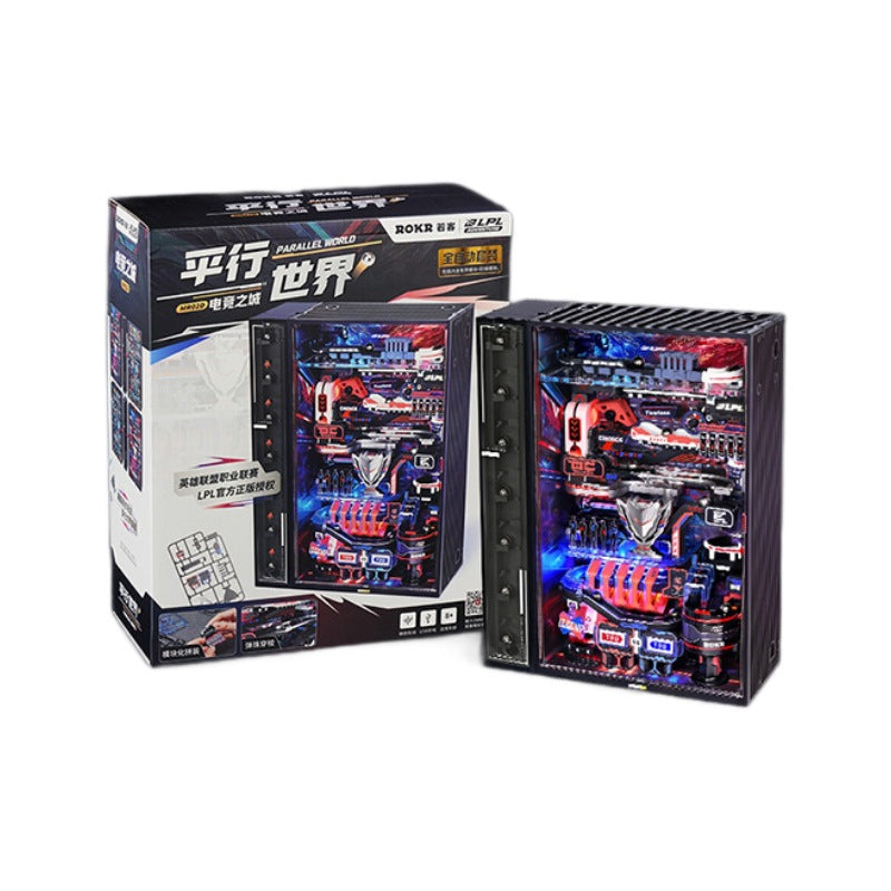Rompecabezas ROKR Tridimensional LED automático de bloques de construcción de mundo paralelo, e-sports ciudad bloques de construcción hechos a mano