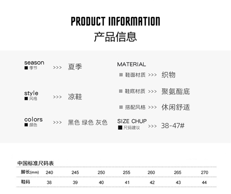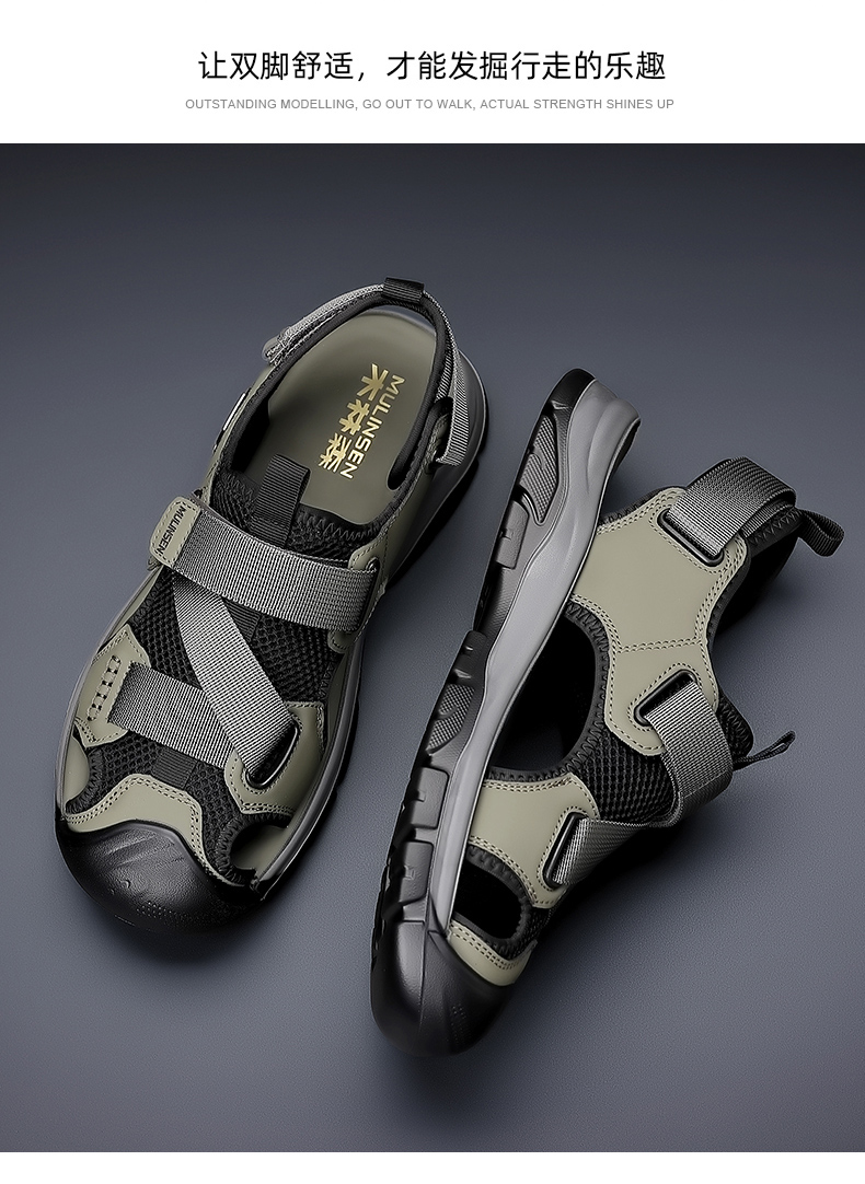 Si buscas unas sandalias versátiles que combinen comodidad, agarre y durabilidad, las 〈modelo〉 son tu mejor opción. Están fabricadas en 〈material: EVA/PU/cuero sintético/malla〉 de alta resistencia, con una plantilla ergonómica que se adapta al pie y una suela con patrón antideslizante para mayor estabilidad en superficies húmedas.