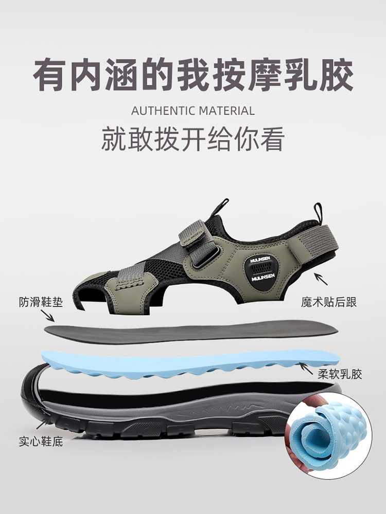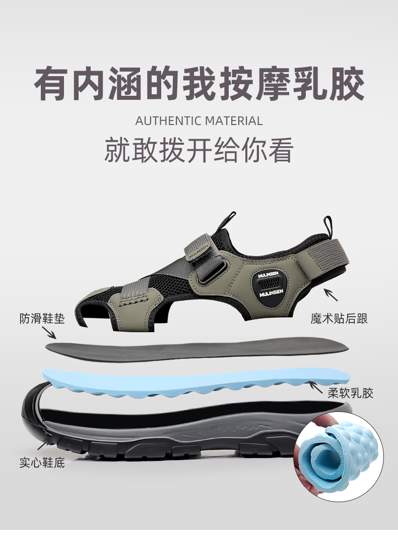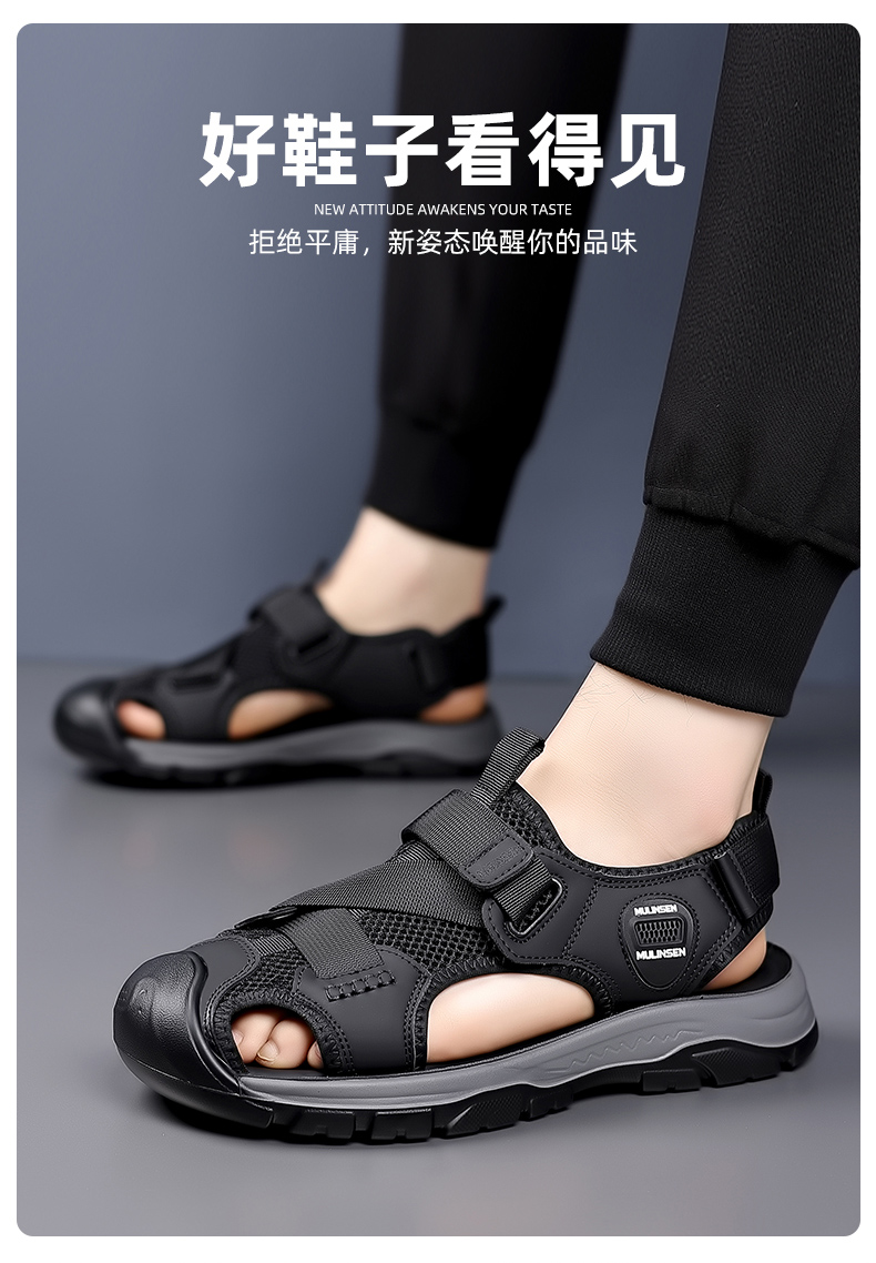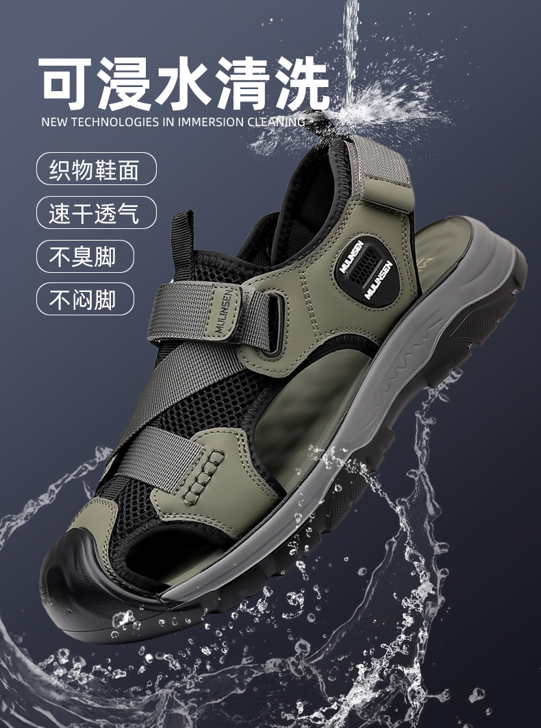 Sandalias de punta Mulinsen para hombre Deportes al aire libre de verano y zapatos de ocio con suela bland, zapatos de playa impermeables y antideslizantes